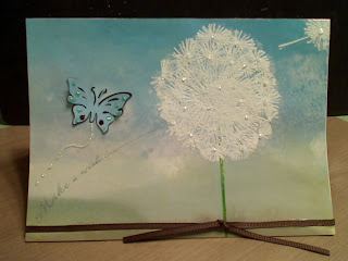 It's hard to tell but after I embossed the dandelion, I added white flocking to make it fuzzy. And I sent it to my friend Michele's daughter Hannah for her birthday. I hope she loved receiving it as much as I loved creating it.