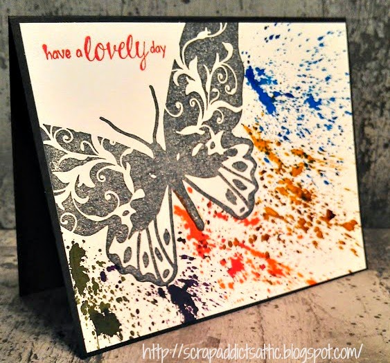 | Card #4 I used Tim Holtz Color Wash but didn't spray, I splattered |